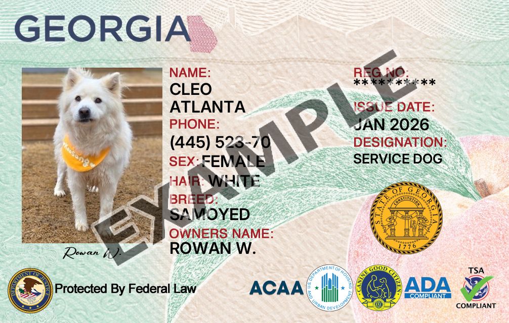 Georgia Service Dog Registration Card