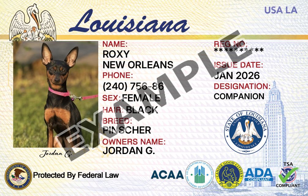 Louisiana Service Dog Registration Card