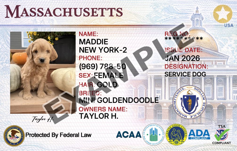 Massachusetts Service Dog Registration Card