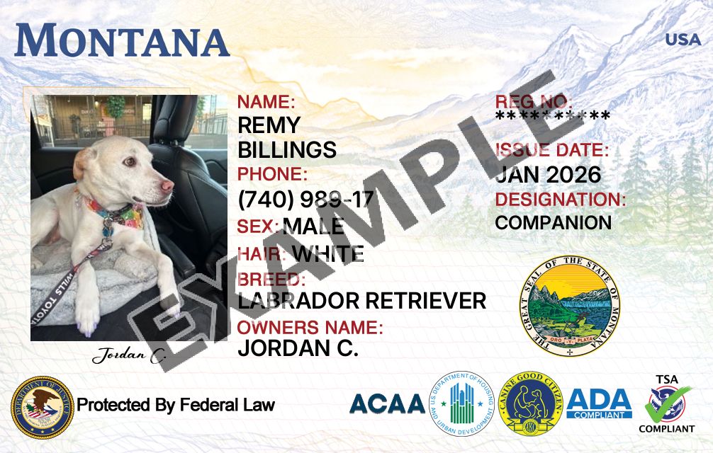 Montana Service Dog Registration Card